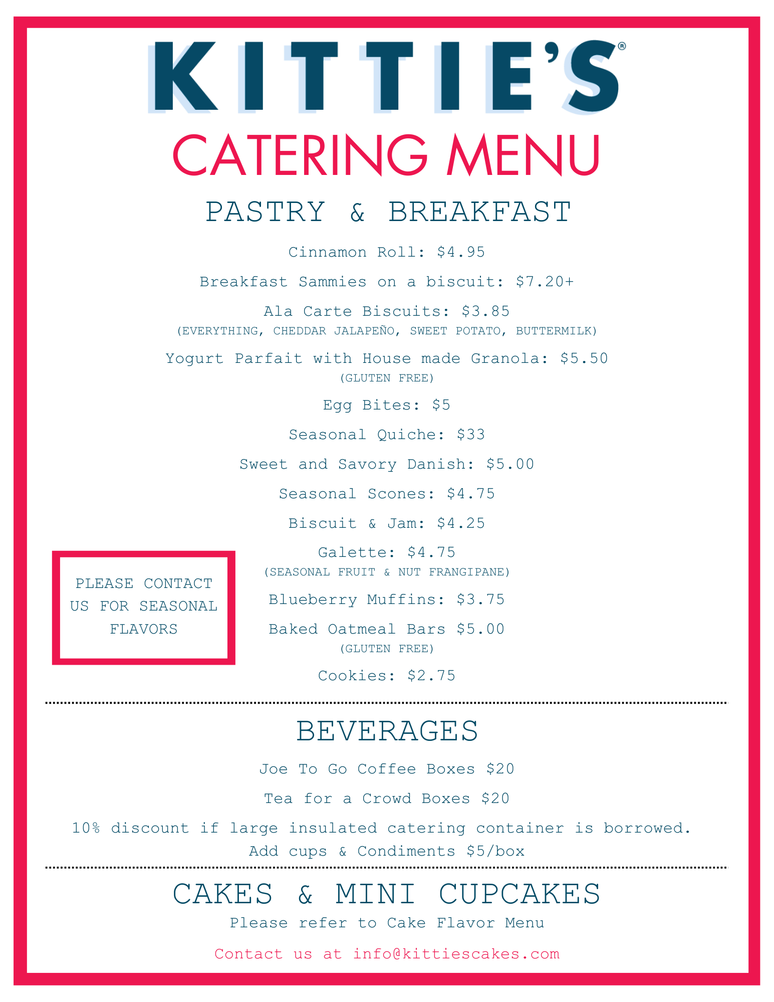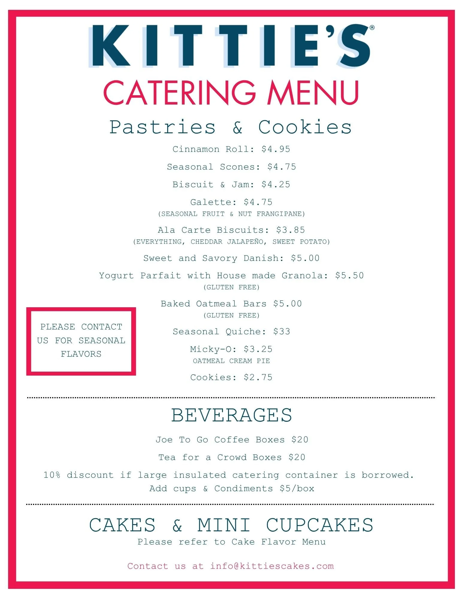 We would love to be a part of your event! We have catered events large and small with our delicious cinnamon rolls, scones, quiche, breakfast sammies, danish, mini cupcakes and more! Check out our catering menu and contact us for more information!